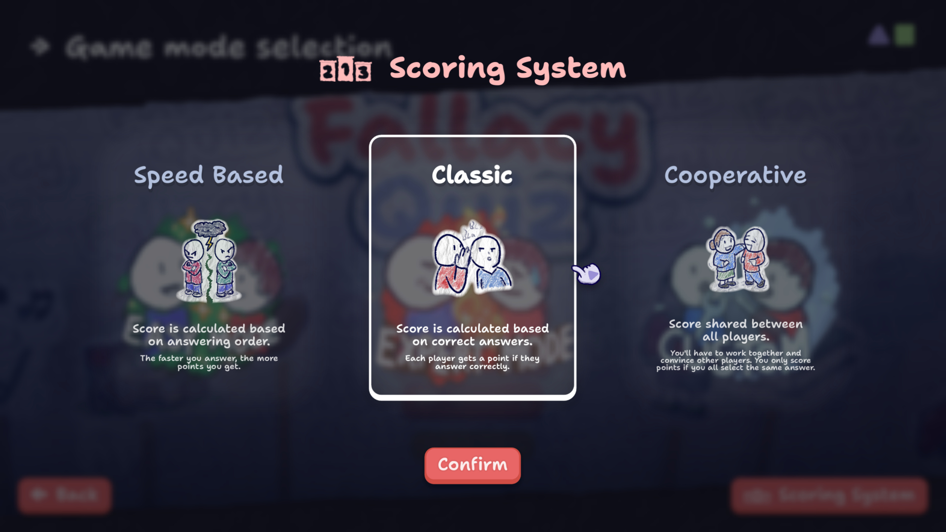 The two new scoring systems can make for a much more competitive game where players try to answer as fast as possible, or for a much more discussion prone experience where you'll have to convince other players to choose the same answer as you.