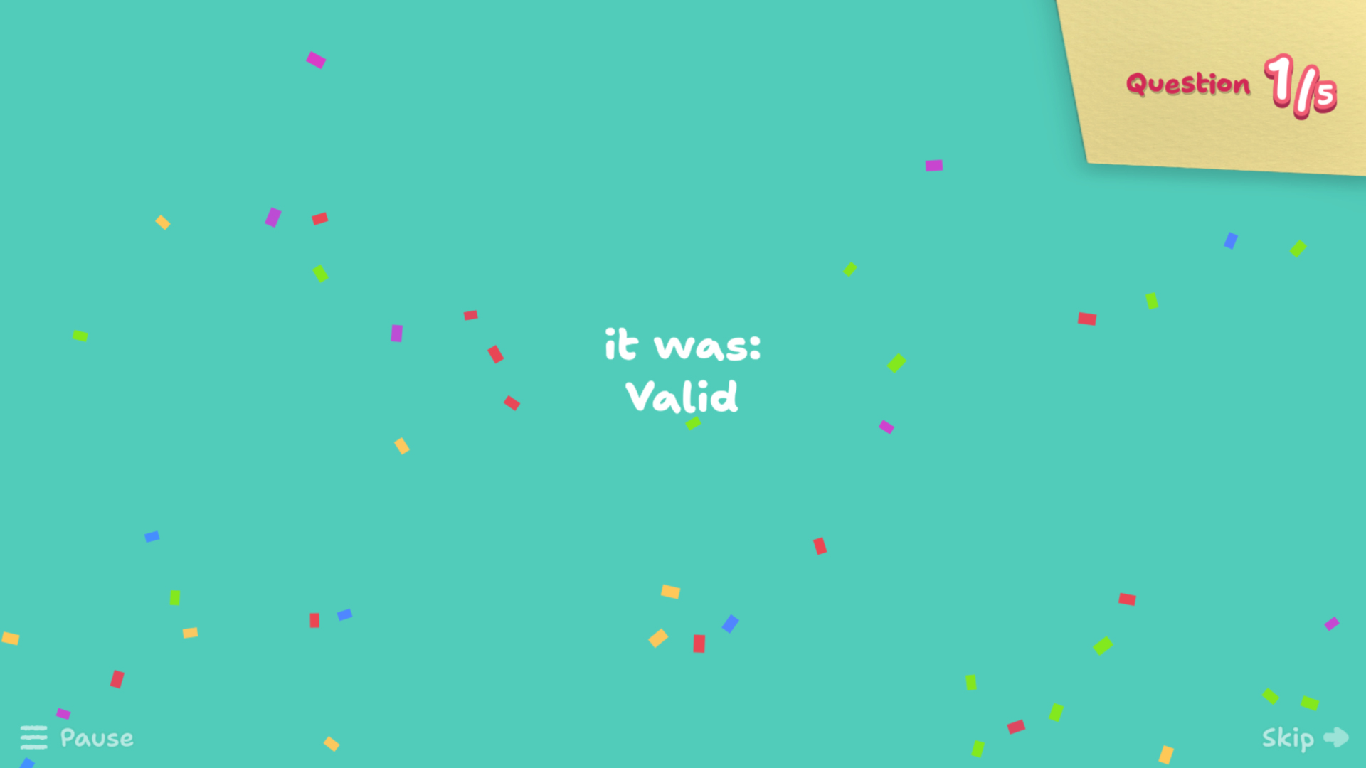 I'm convinced that having to wait just a little time before the next question to let you ponder the answer you gave is a good thing. However, I can understand that some people just want to get that 9999 score, have been playing for a bit, and can't be bothered to wait through another "next round" animation. That's why it's now possible to add a "skip" button from the advanced settings menu. For the one concerned, I want to say "you're welcome", but they might have skipped the rest of this announcement already.