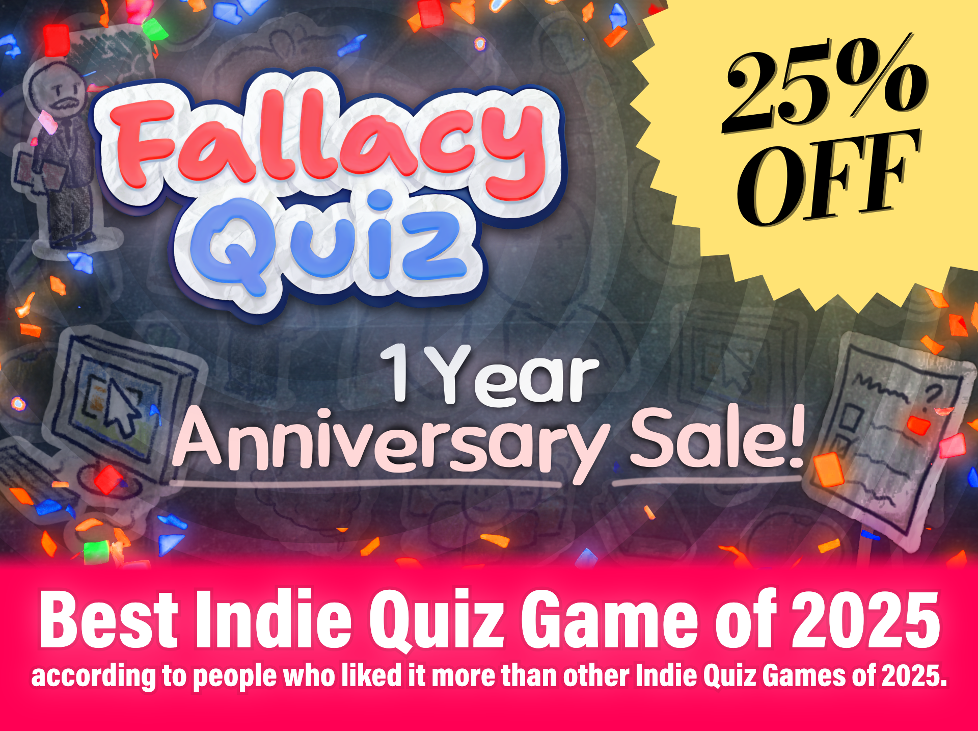 It's 33% off on Steam: https://store.steampowered.com/app/2847380/Fallacy_Quiz/